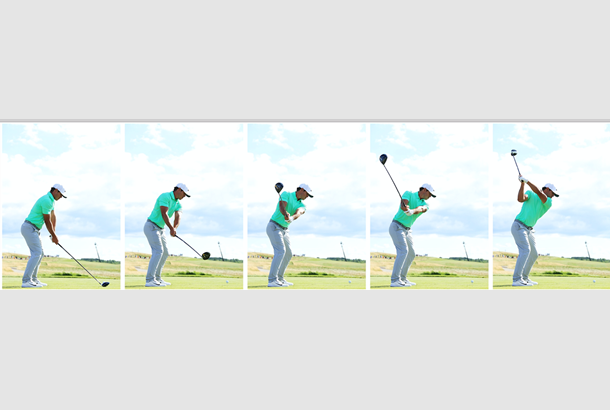 To combat the closed clubface we saw earlier, brooks releases the right hand under the left, which.