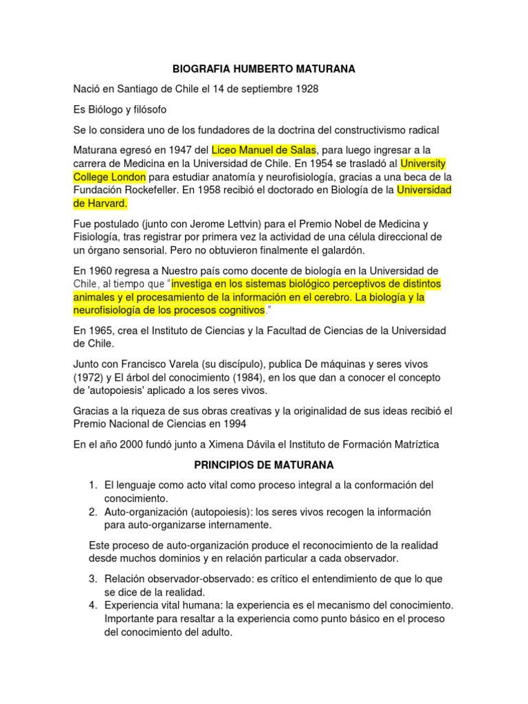El pensamiento universal de humberto maturana es de las mayores herencias que puede recibir chile, nos guío e inspiró a muchos. 44,599 likes · 34 talking about this. Share humberto maturana quotes about love is, interaction and existence. Cada uno de los 10 capítulos del documental la educación prohibida es iniciado con una cita de un personaje que ha dejado una importante huella ese esfuerzo por crear buenas condicion… En el conversar construimos nuestra realidad con el otro.